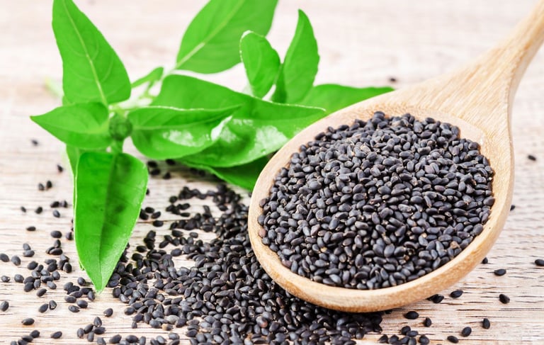 Basil seeds, also known as Sabja seeds or Tukmaria, are the seeds of the basil plant (Ocimum basilicum).