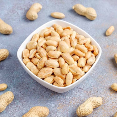 Blanched Peanuts (Arachis hypogaea) are skinless peanuts that have undergone a blanching process to remove the outer red skin. These peanuts are popular for their smooth texture and versatility in cooking, baking, and snacking.
