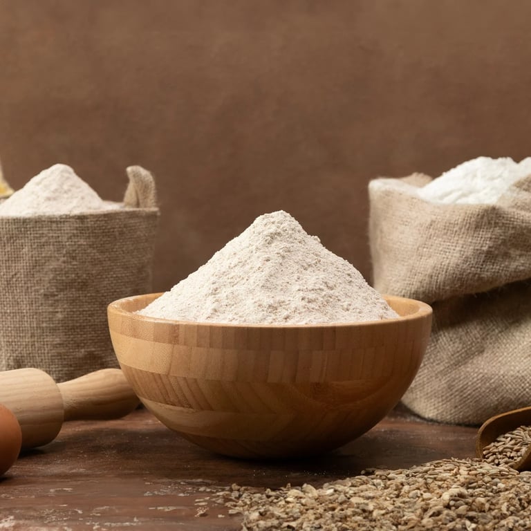 Soya flour (Glycine max) is finely ground soybean flour, used as a versatile ingredient in cooking and baking.