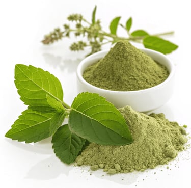 Tulsi Leaves Powder (Ocimum sanctum) is derived from the dried leaves of the Tulsi plant, also known as Holy Basil.